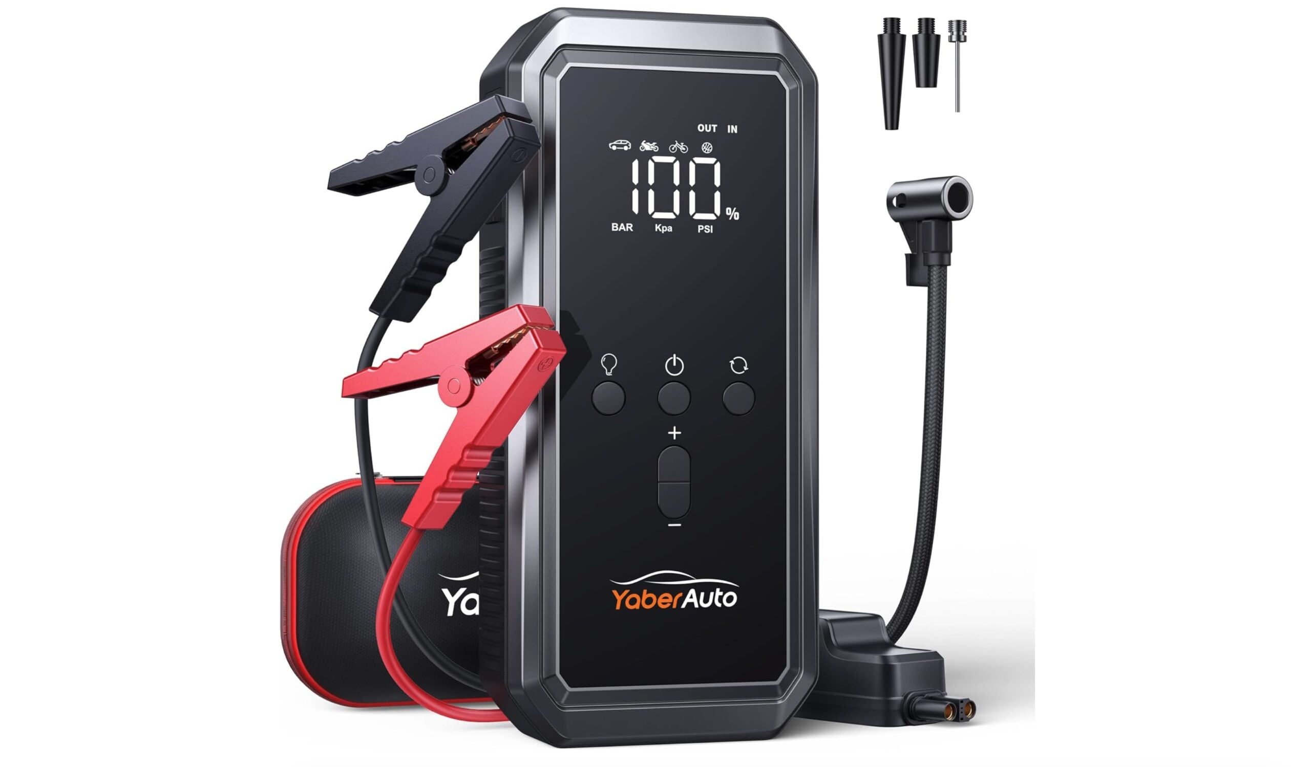 El contenido del paquete YaberAuto YA70 ofrece todo lo necesario para estar preparado para casi cualquier contingencia: